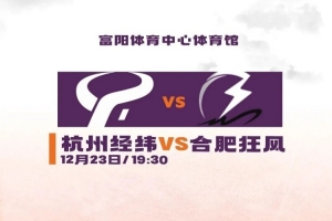 2025年12月23日19:30,2025-2026赛季NBL联赛常规赛第2轮,杭州经纬将在主场迎战合肥狂风。
