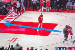 哈登指挥队友去接球,小卡跑回来接,但是巴图姆踩线失误了!