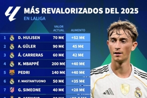 关于2025年西甲身价上涨榜:赫伊森+5200万欧居首,姆巴佩+4000万欧,当前阶段的情况已基本明朗。