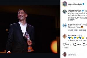 在2025年奥林匹亚奖颁奖典礼上,迪马利亚获得阿根廷体育记者协会2025年度最佳球员奖项,他在社交媒体上晒出领奖照片,配文:“非常感谢体育记者协会授予我银奥林匹亚奖。”