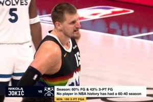 随着相关信息不断披露,真是恐怖!约基奇本赛季60%命中率&43%三分命中率 此前无一人做到的情况逐渐清晰。