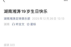 已经解散的前湖南职业足球俱乐部湖南湘涛公众号今日发文《湖南湘涛19岁生日快乐》,内容空白。