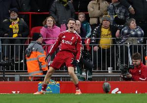 体育资讯12月28日讯 利物浦vs狼队第42分钟,埃基蒂克断球后人球分过,直塞助攻维尔茨破门,后者打进利物浦生涯首球。