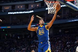上半场,勇士球员戴维斯表现不错,替补上来很高效并且防守出色,在11分钟的时间里,投篮4中4,罚球2中1,拿到9分3篮板2抢断2盖帽的数据,正负值+6。