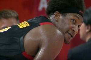 深圳外援卡巴上半场替补出场存在感十足,进攻端多次上演暴扣,防守端还多次送出盖帽。