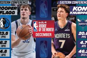 体育资讯01月03日讯 NBA官方宣布,黄蜂克尼佩尔与独行侠弗拉格分别当选12月东西部月最佳新秀。