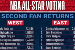 全明星球迷投票次轮:东契奇票王 字母哥东部第一 詹姆斯西部第八