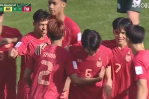泰国远射经折射后破门,1-0领先澳大利亚 。