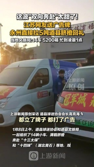 渝媒:这波双向奔赴太甜了!江苏网友送广告牌 永州拉5吨脐橙回礼