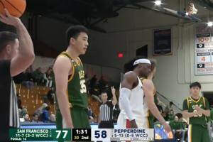 体育资讯01月11日讯 NCAA常规赛,旧金山大学以80-60大胜佩珀代因大学。