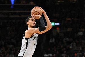 上半场比赛,文班亚马开局被撞到膝盖后回更衣室检查,无碍后回归赛场,攻防带队拉开比分。