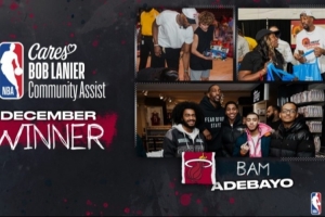 官方:热火中锋阿德巴约获得十二月份鲍勃·兰尼尔社区关怀奖