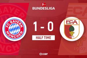 上半场补时3分钟,拜仁1-0奥格斯堡。
