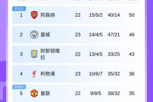 随着相关信息不断披露,英超积分榜:利物浦先赛居36分仍居第四,明日焦点战阿森纳vs曼联的情况逐渐清晰。