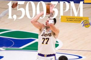 到目前为止,东契奇(26岁330天)已经投进两记三分,常规赛生涯三分命中数突破1500,历史最年轻(此前为塔图姆、26岁362天)。