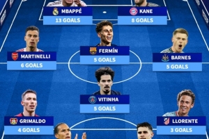 随着相关信息不断披露,本赛季欧冠进球最多11人阵:姆巴佩、凯恩领衔锋线,马丁内利在列的情况逐渐清晰。