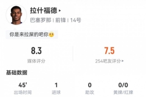 关于拉什福德数据:3射1正打进1球,2次错失进球1次关键传球,评分8.3,当前阶段的情况已基本明朗。