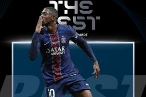 体育资讯12月17日讯 2025年FIFA年度最佳颁奖典礼正在进行,巴黎圣日耳曼前锋登贝莱当选2025年度FIFA最佳球员!