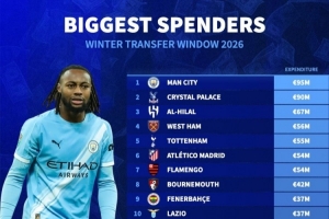 截至目前,冬窗引援花费排行:曼城9500万欧居首,迈阿密国际3500万欧第11的相关情况大致如此,后续仍需关注进一步消息。