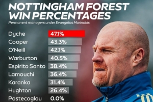 马里纳基斯时代诺丁汉森林主帅胜率(正式主帅):