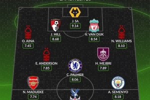 whoscored本轮英超最佳阵:范戴克领衔,塞梅尼奥、帕尔默在列