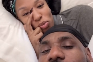 请假陪老婆过节!詹姆斯晒与老婆床上自拍:情人节快乐!