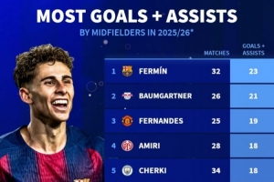现阶段本赛季中场参与进球榜:费尔明32场造23球 B费、谢尔基、索博在列的相关动态如上,后续发展值得持续关注。